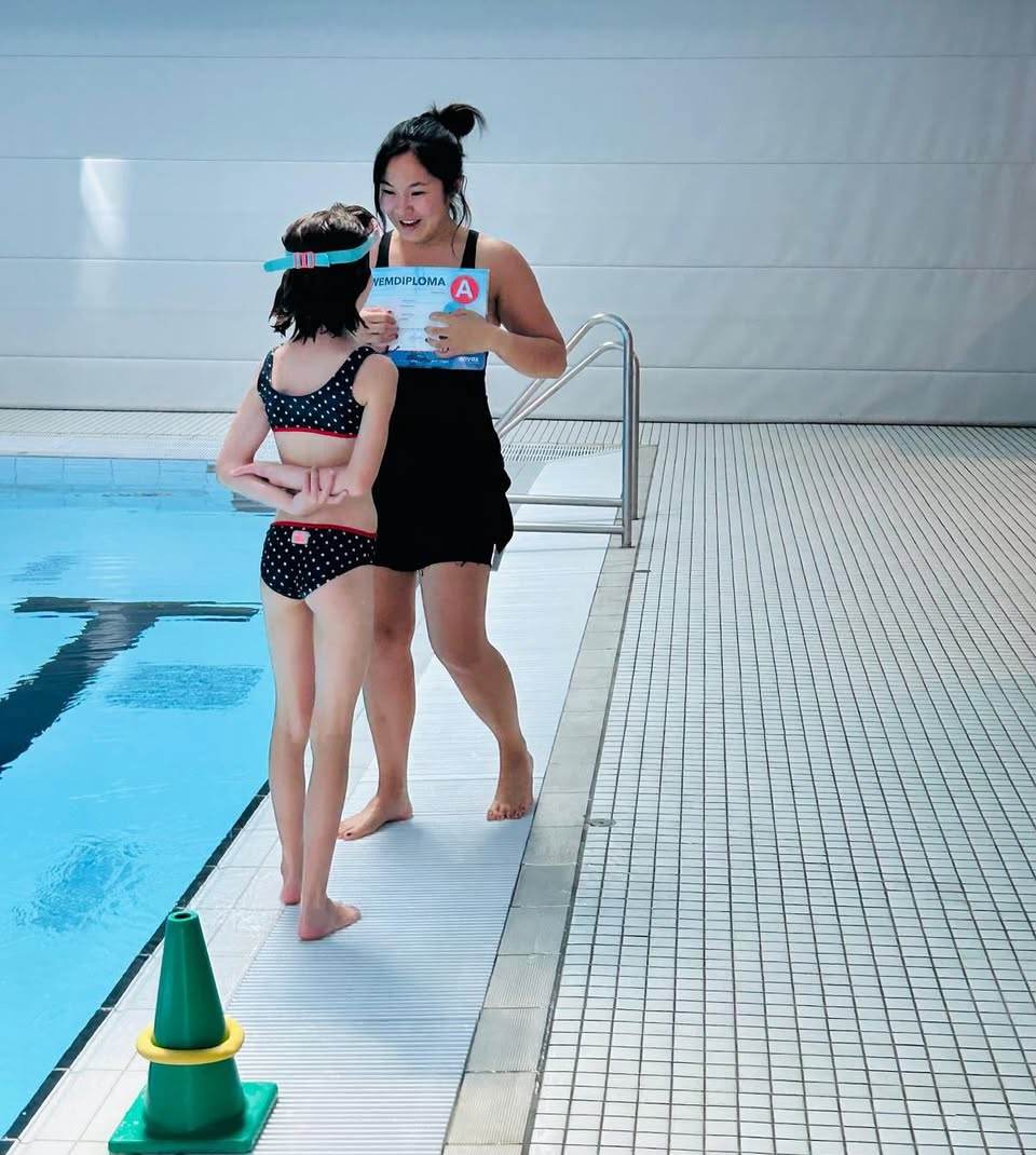 Daarom had Dung Ahn, die naast fysiotherapeut, gespecialiseerd is in kinderfysiotherapie, ook nog eens een certificering als zwemjuf aan haar palet toegevoegd. Zo kan zij kinderen, die buiten de standaardmal van het reguliere zwemonderwijs vallen, toch helpen hun diploma’s te behalen.